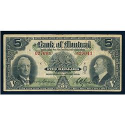 BANK OF MONTREAL 1931 $5.00, 505-58-02 Very Fine+