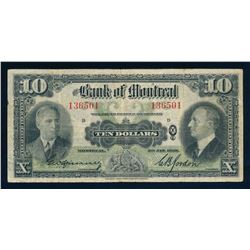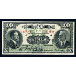 BANK OF MONTREAL 1914 $10.00, 505-54-08 Extra Fine
