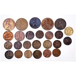 GREAT BRITAIN 1825-1944 A Lot of 25 Farthing-3 Pence Copper Collection VG-EF Description: Should be viewed