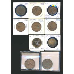 WORLD A Lot of 10 Commonwealth Copper Coins and Tokens Very Good-Extra Fine Description: 6 x Ireland Penny 2 x 1928, 1 x 1937, 1942, 1948, 1952. 1 x