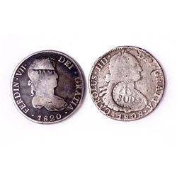 1808-1820 A Special Lot of 2 x 8 Reales Bolivia Counter Stamp and Mexico Cast.