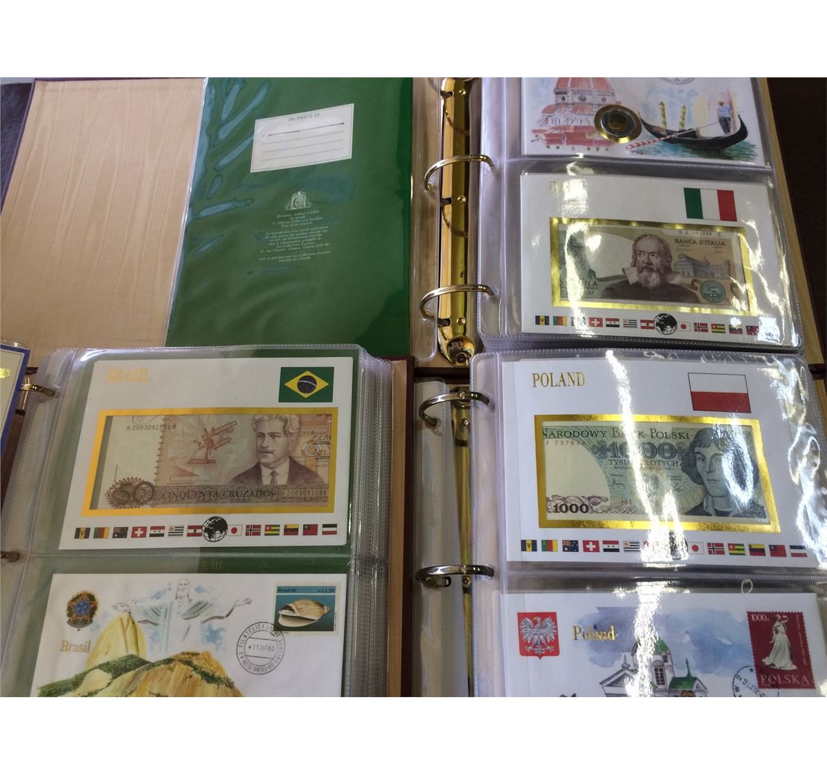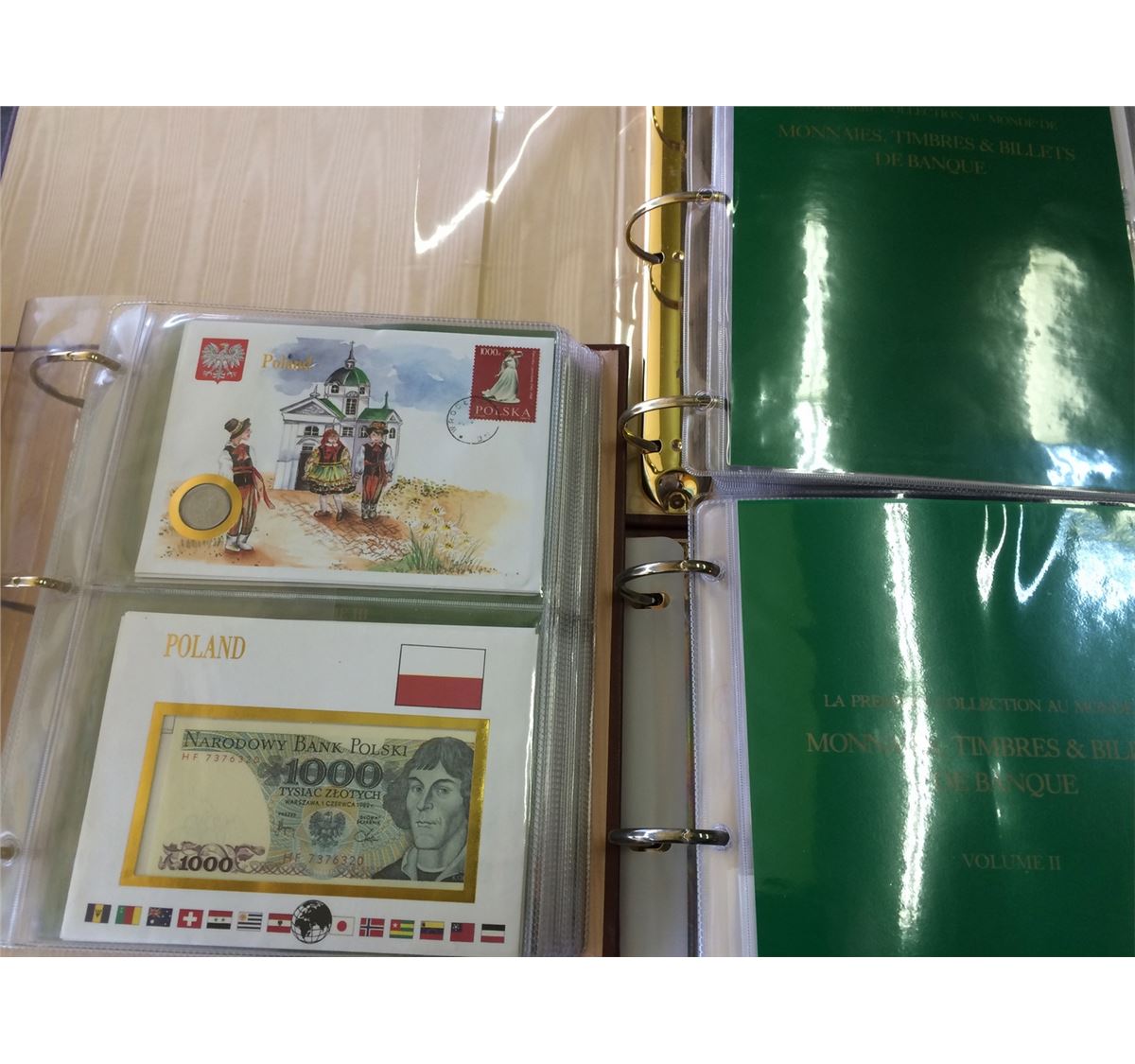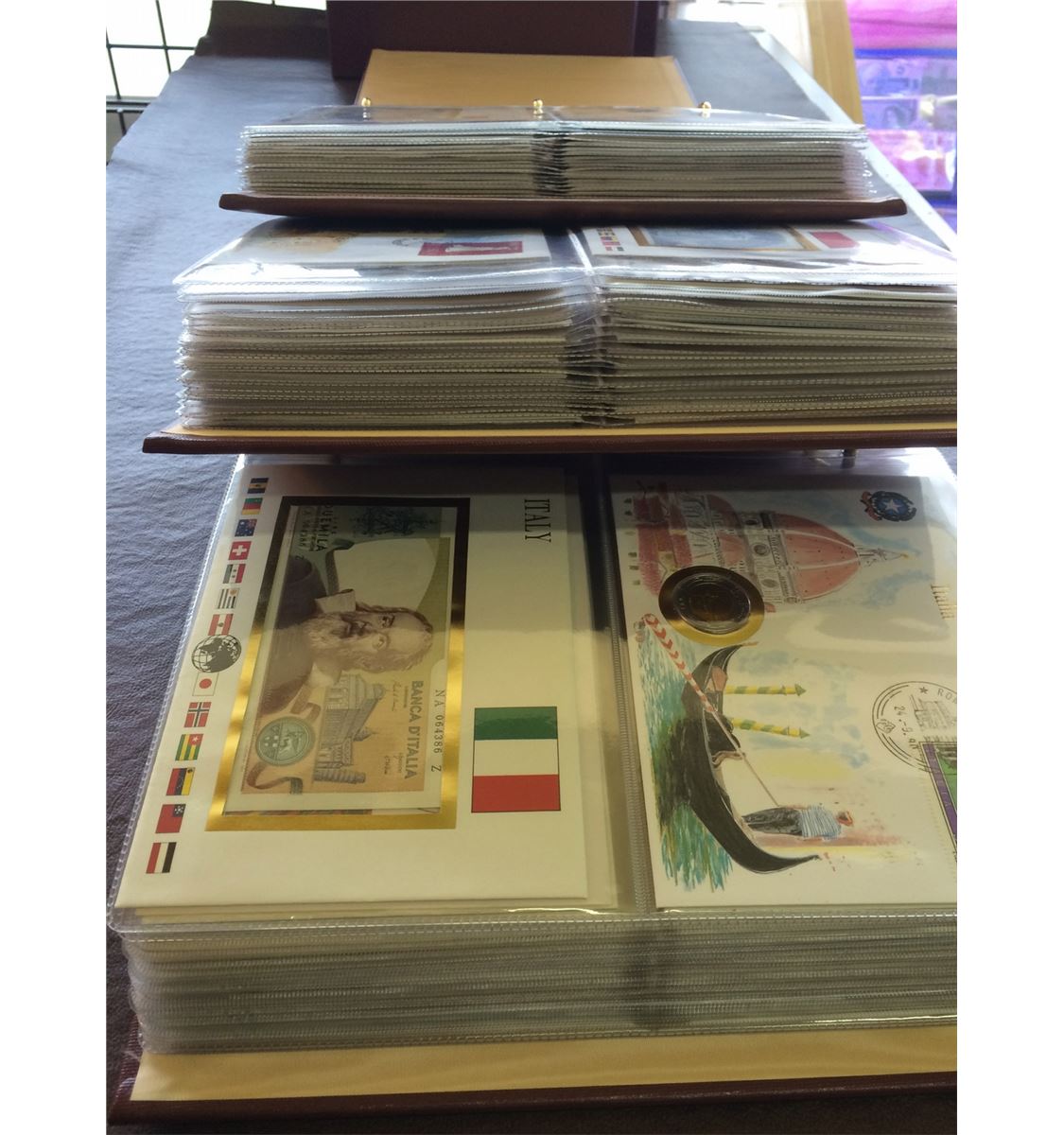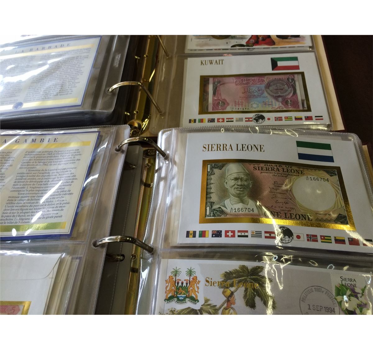 Coins, Stamps and World Bank notes by Excelsior. 72 First Day Covers with a coin of the same country and a banknote each page of these books contain a country.
