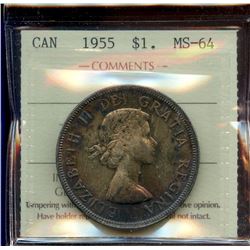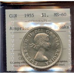 1955 $1 Arnprior with die breaks , ICCS MS-60.