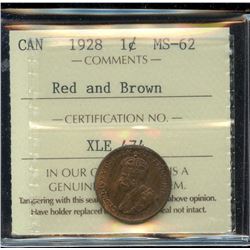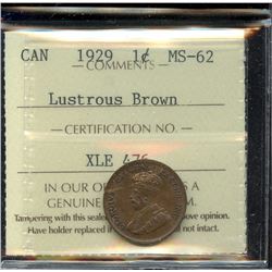 1929 1¢, ICCS MS-62 Lustrous Brown.