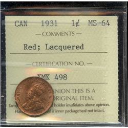 1931 1¢ Lacquered, ICCS MS-64 Red.
