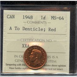 1948 1¢ A to Denticle, ICCS MS-64 Red.