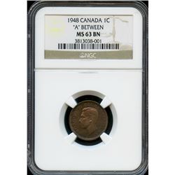 1948 1¢ A off denticle, NGC MS-63 Brown.