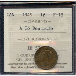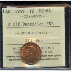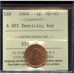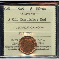 1949 1¢ A off denticle, ICCS MS-64 Red.