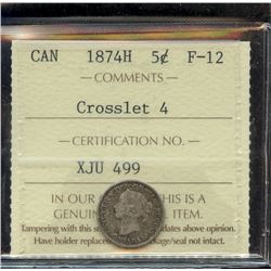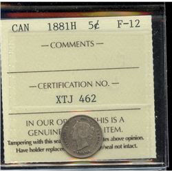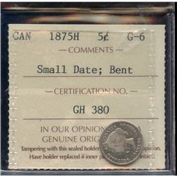 1875H 5¢ Small Date, ICCS G-6 designated as Bent.