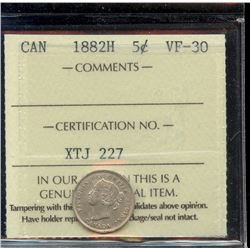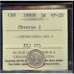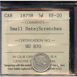 1875H 5¢ Small Date, ICCS VF-20 designated as Scratches.