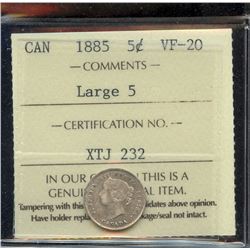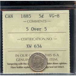 1885 5¢ 5 Over 5, ICCS VG-8.