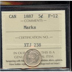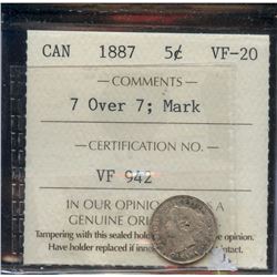 1887 5¢ 7 Over 7, ICCS VF-20 designated as Mark.