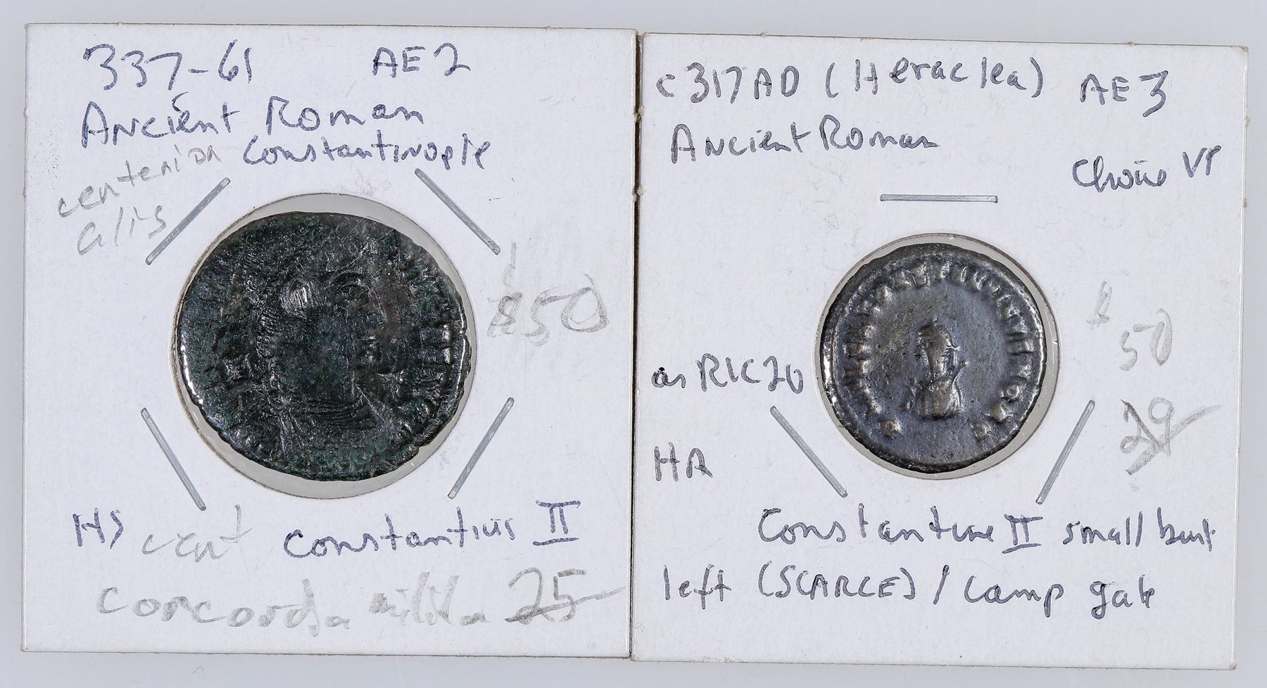 Two coins of the son of Constantine the Great. 1) small bust facing left; 2) large bust facing right.
