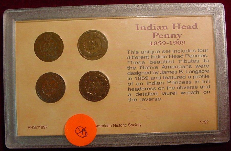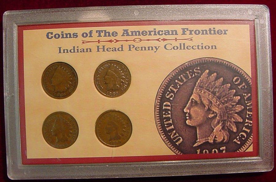 Coins of the American Frontier. 1886" 87 88 & 89 Indian Head Cents in a Fancy Holder.