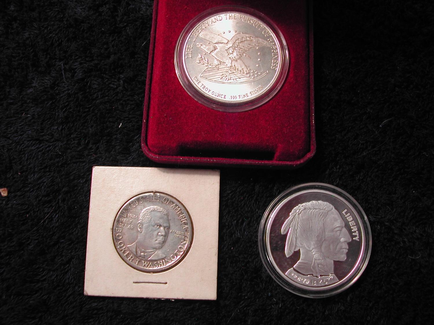 Copy of 2001 Buffalo Silver DOllar, Chrysler Bill of Rights one Troy ounce .999 Silver Medal, 1945 Booker T Washington Half Dollar