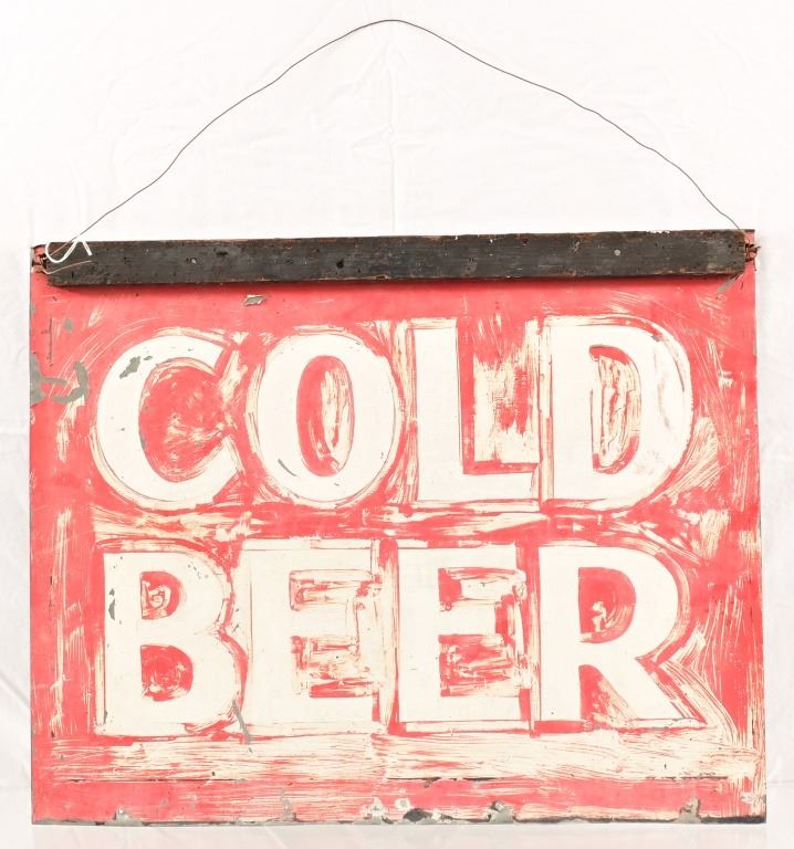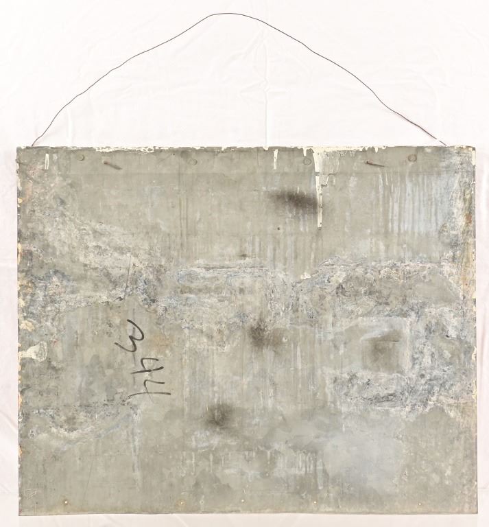 Wood and wire hanger, galvanized tin sign. 24 1/2" x 30"