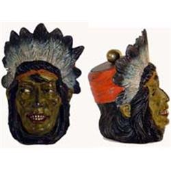 Cold Painted Poly Chrome Metal Indian Head Humidor. 5.5" tall. Estimate $100-$150.