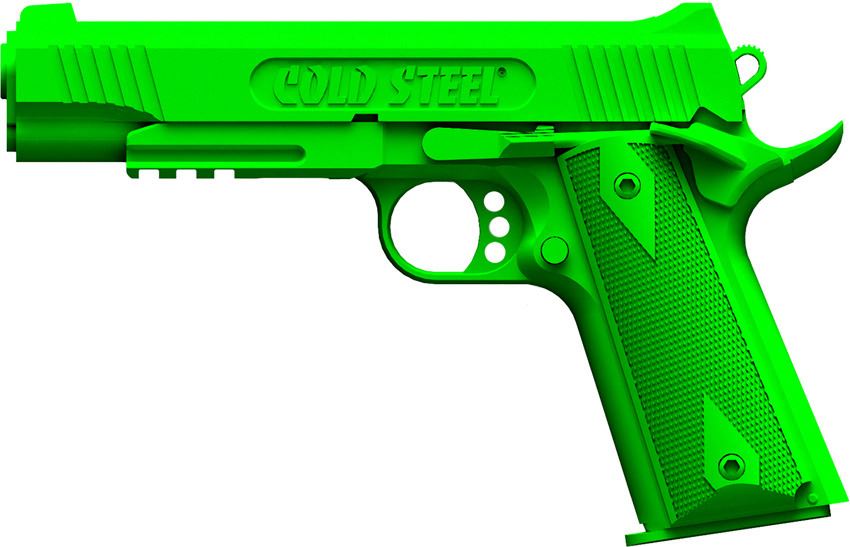 1911 Rubber Training Pistol - Measures: 8 5/8" long x 1" wide x 5 3/4" high. Lime green polypropylene construction. Hammer in the down position with safety off. Ideal for use by Military and Law Enforcement Personnel, Personal Protection and Security Professionals, and Civilian Martial Artists. Training Version.