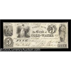 <TABLE cellSpacing=0 cellPadding=0 width="100%" bgColor=#000000 border=0><TBODY> <TR><TD width="100%"><TABLE cellSpacing=1 cellPadding=3 width="100%" border=0><TBODY><TR><TD width="100%" bgColor=#79735c><FONT face=arial color=#ffffff size=3><B>Description</B> </FONT></TD></TR><TR><TD width="100%" bgColor=#ffffff><FONT face=arial size=2><B>Cold Water, MI- Bank of Cold-Water</B></I> $5 Jan. 1, 1838 G8 Lee COL 2-4<BR>A very nice signed and issued piece which serves as the plate example in the new Lee reference and is, like all of the notes from here in the Thompson holdings, pedigreed to the Bowen and Lee collections. <B>Fine-Very Fine.</B></I> (300-500 ) </FONT></TD></TR></TBODY></TABLE></TD></TR></TBODY></TABLE><BR><TABLE cellSpacing=0 cellPadding=0 width="100%" bgColor=#000000 border=0><TBODY><TR> Important notice: Heritage usually auctions material at the rate of 200-250 lots per hour. On some occasions eBay Live bid software or the Internet may not be able to keep up with the pace of the auction. We recommend placing a realistic absentee bid now as insurance to avoid disappointment. Occasionally the auctioneer may eliminate or reject an eBay Live bid, and the auctioneer may also reopen a lot after the close of the eBay live bidding (usually because we missed an audience bid), and may reject your bid even if it shows you as the winning bidder. By bidding via eBay Live, you agree that Heritage may award the lot to another bidder at its sole discretion under the circumstances described above or any other reasonable circumstances. Also please note that all Heritage lots purchased through eBay Live carry a 20% Buyer's Premium. Please make sure you read the Terms and Conditions before you bid.</TR></TBODY></TABLE>