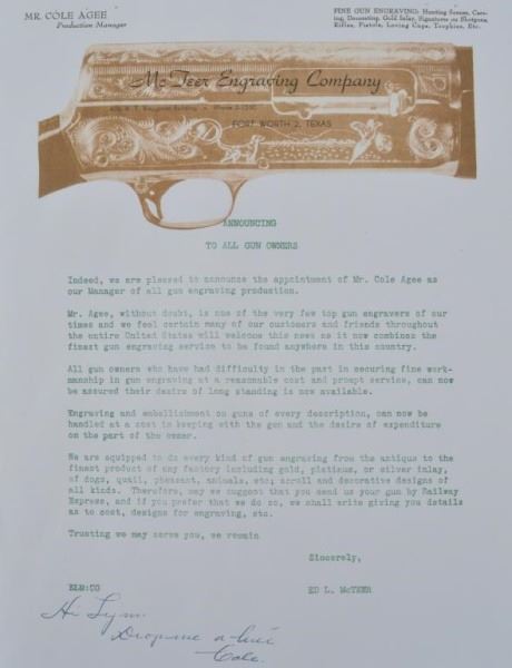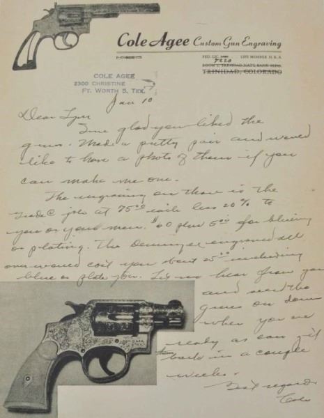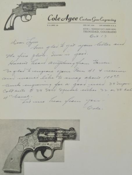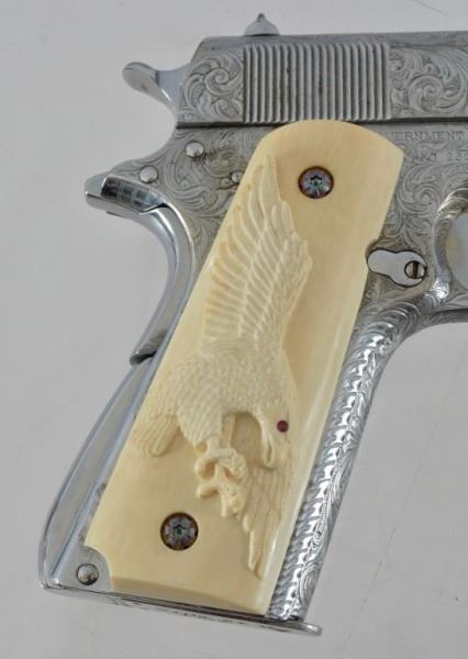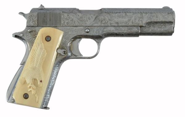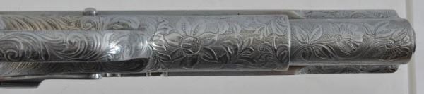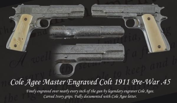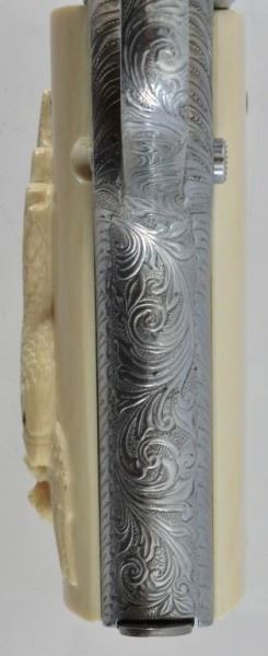 * Finely engraved over nearly every inch of the gun by legendary engraver Cole Agee. Carved Ivory grips. Fully documented with Cole Agee letter.