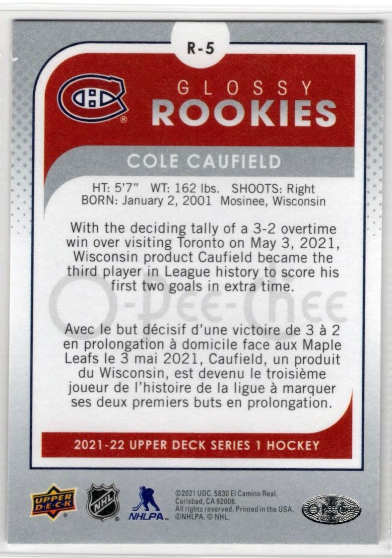 Cole Caufield 2021-22 O-Pee-Chee Glossy Rookies Rookie Card #R-5