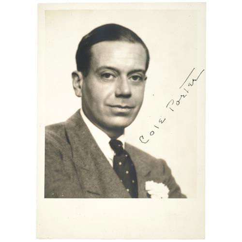 <Our item number 140883><B>Porter, Cole.</B> (1891-1964) American composer, songwriter of "Night and Day," "I've Got You Under My Skin," and numerous Broadway musicals. Black and white photograph signed, 7 x 5 in. Very fine. A professional studio portrait of a fairly young Porter by Hal Phyfe (1892-1968), whose name is embossed at the bottom of the photograph, and whose stamp appears on the back of the photo. Phyfe opened his first studio in 1926 at 7th and Madison (probably the same location as the address on the back), and remained there until about 1950, when he moved to 980-990 Madison Avenue. This photograph was likely taken in the 1930s, at the height of Cole Porter's career. <BR>Estimated Value $900 - 1,200. <BR><BR>Our item number 140883<BR><IMAGES><P ALIGN="CENTER"><IMG SRC="http://www.goldbergcoins.net/liveauction/49jpegs/140883.jpg"> </P></IMAGES>