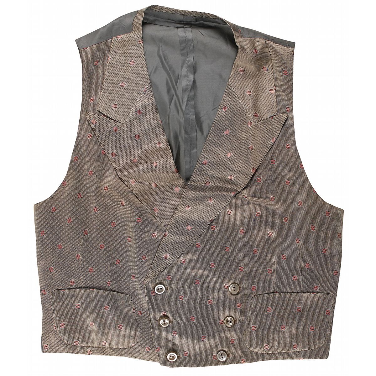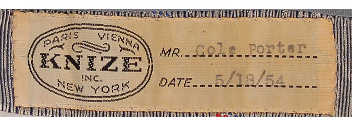 One of Cole Porter’s personally owned and worn waistcoats. Gray checked vest, made by Knize of New York, bears two rows of three buttons in the front and a label sewn into the waist, with Porter’s name typed onto it and dated May 18, 1954. In fine condition. At this time, Porter was in between two hit shows, Can-Can and Silk Stockings, which ran for a combined 1369 shows. Provenance: Sotheby’s, December 2011.
