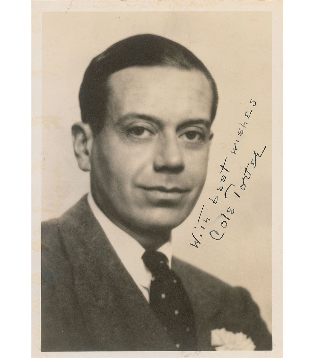 Handsome matte-finish 4.75 x 6.75 head-and-shoulders portrait of Porter, signed in fountain pen, “With best wishes, Cole Porter.” In fine condition, with a slight brush to the signature and mild rippling to edges.