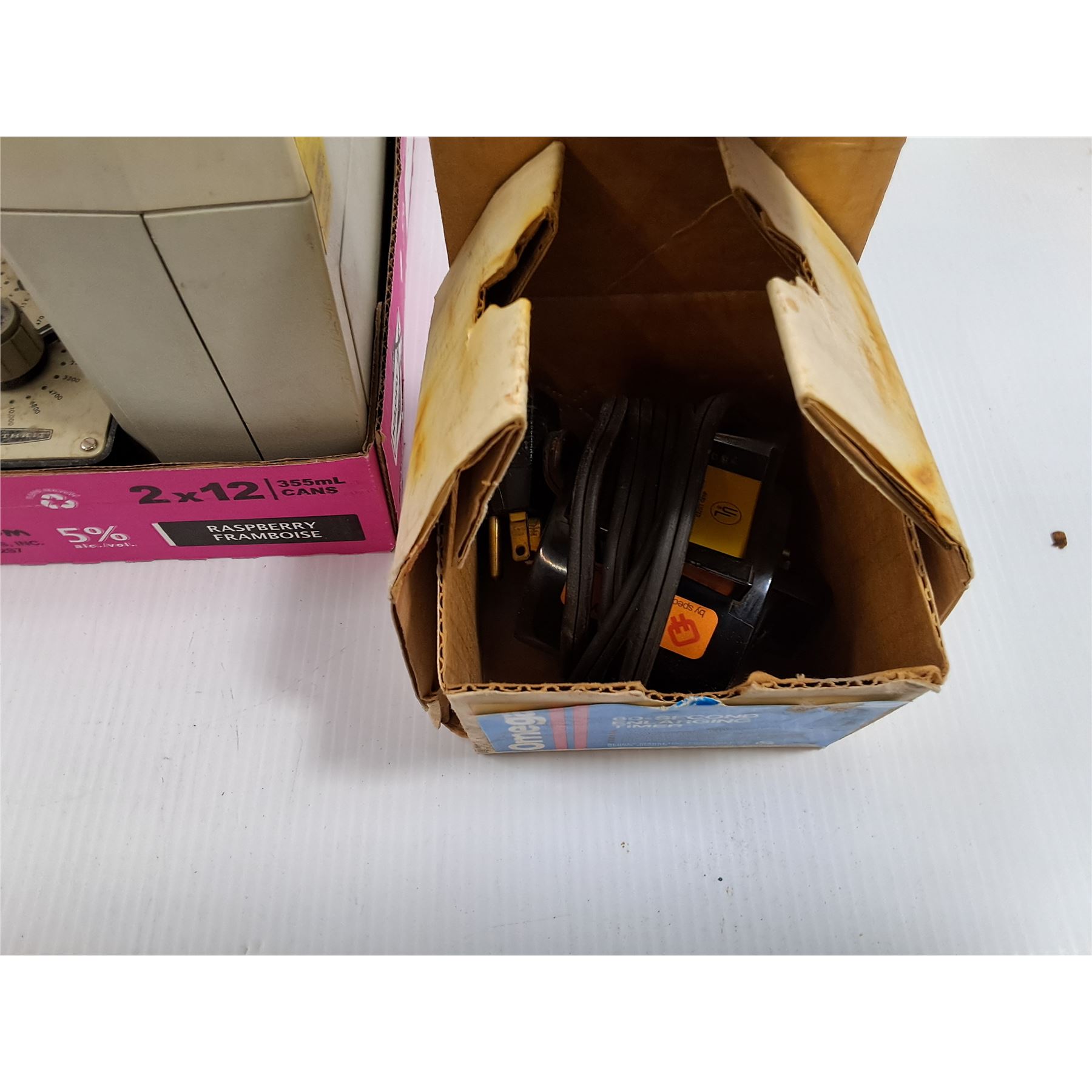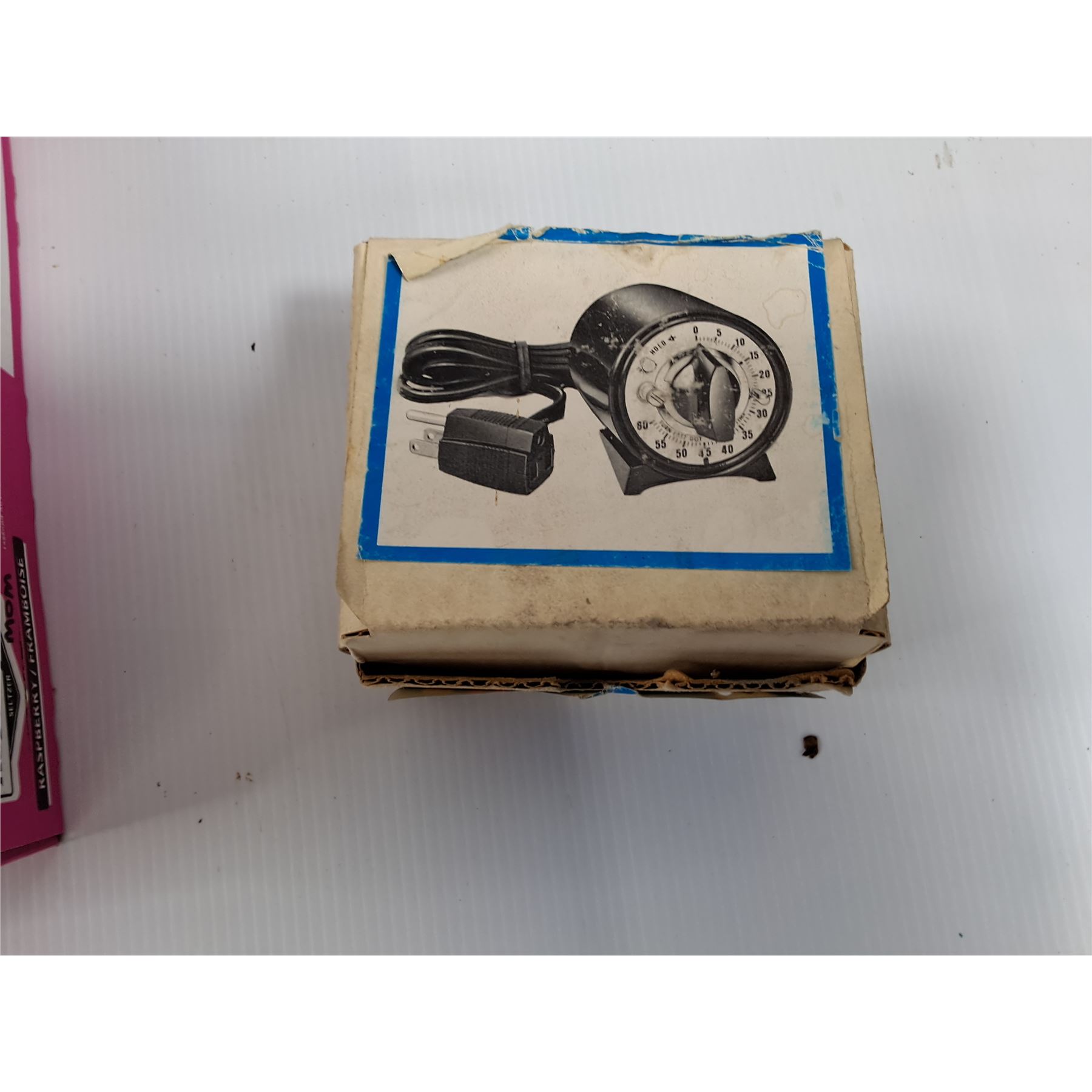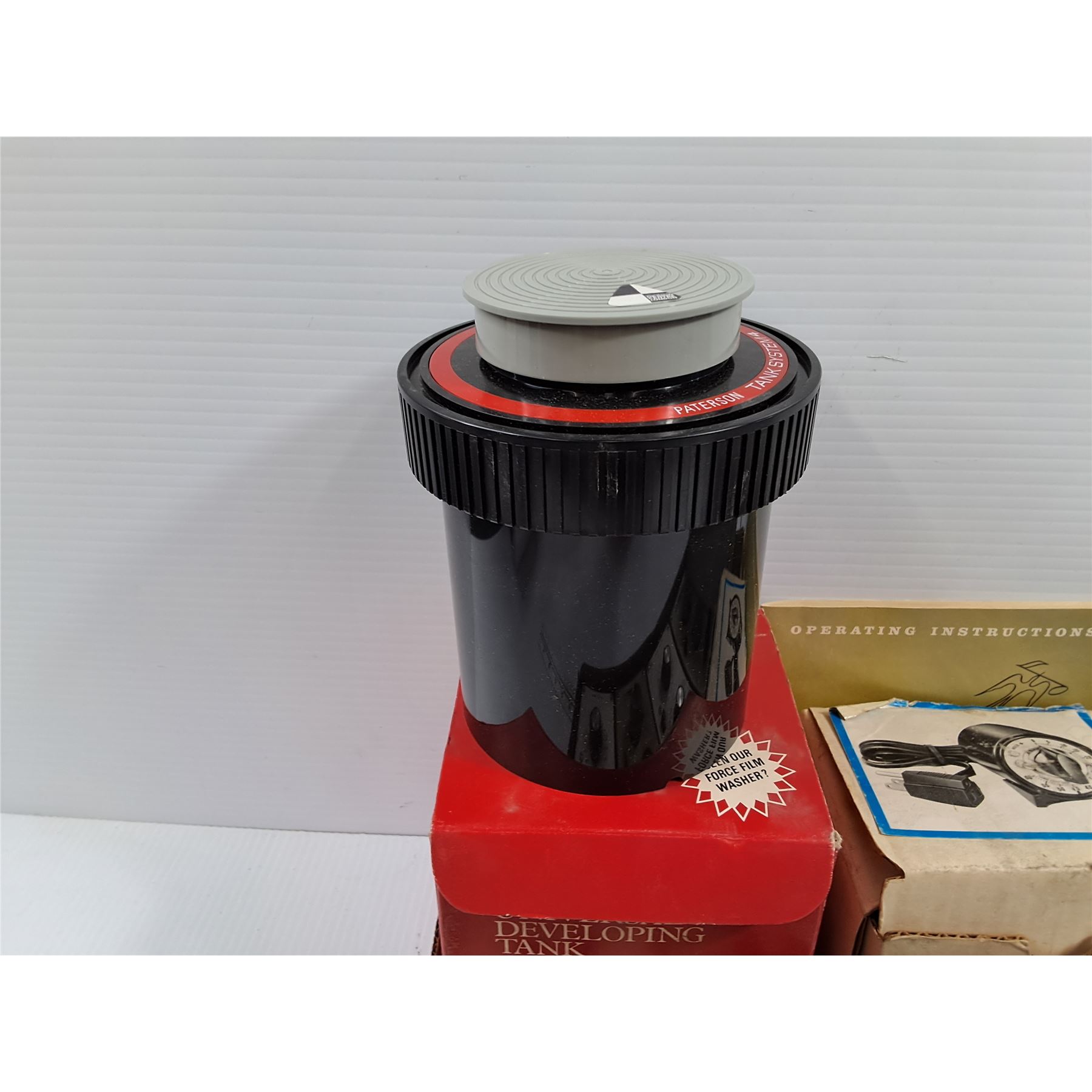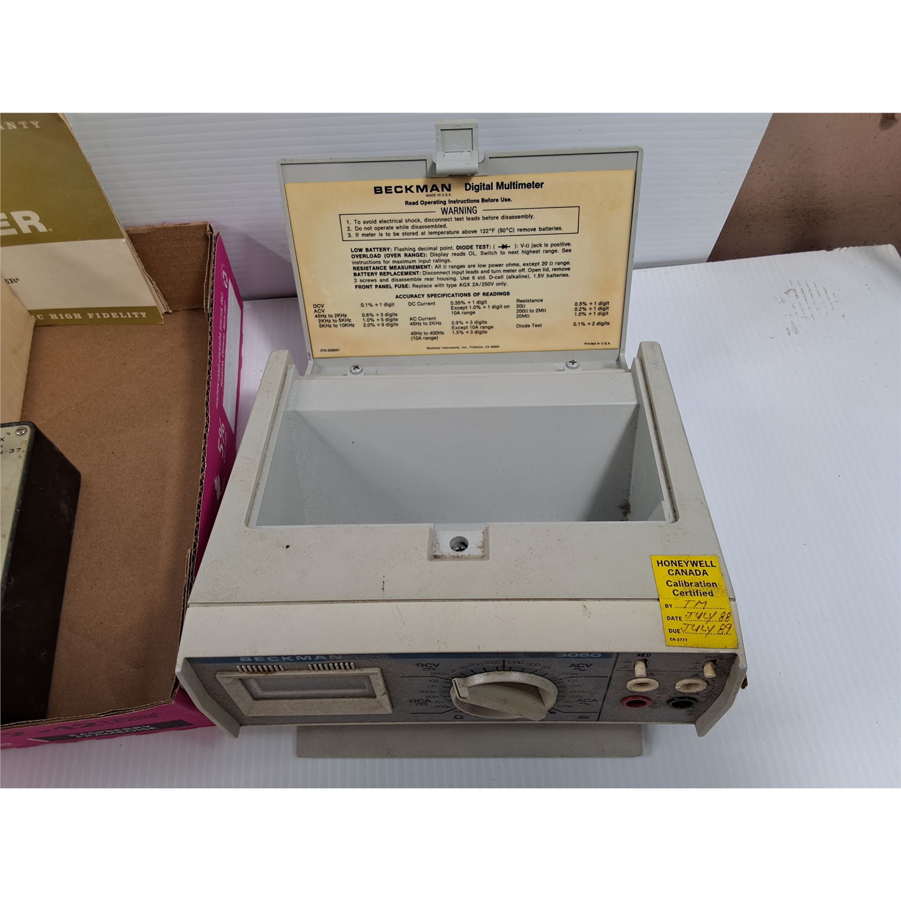 Contains Film Developing Tank With Manual In Box, (4) Vintage Resistance Substitution Box, Beckman Vintage Digital Multimeter No Cords Included, One Minute Vintage Omega Electric Plug In Timer