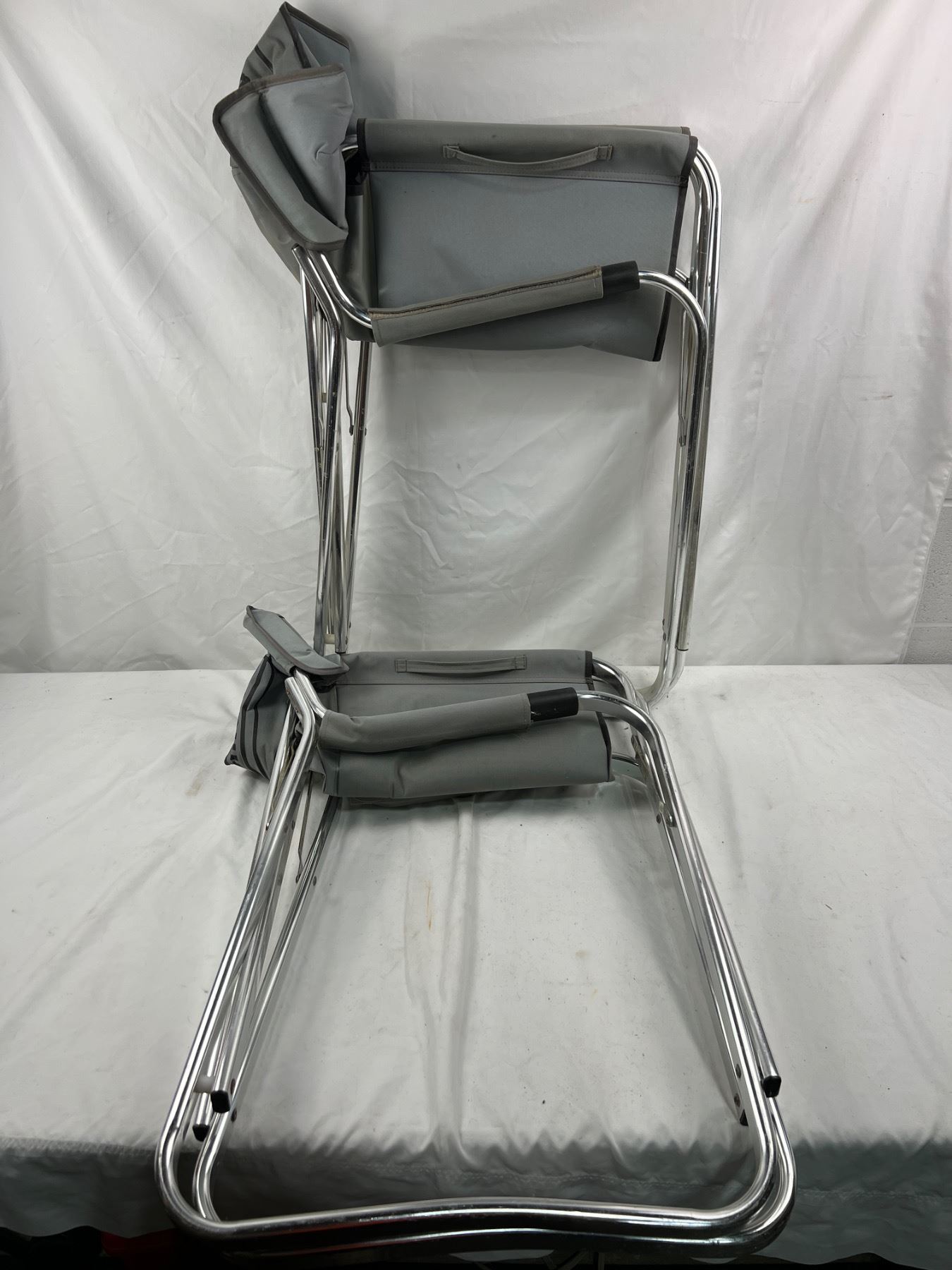 Staining and wear to fabric of chairs. Metal frames in good shape.