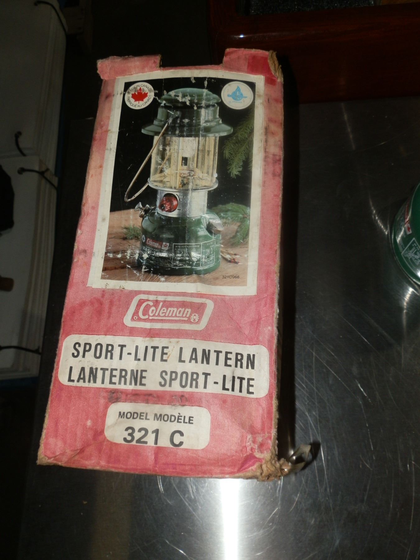 Old school Coleman Camping Lantern the ones that take the fuel, comes with original box.. used