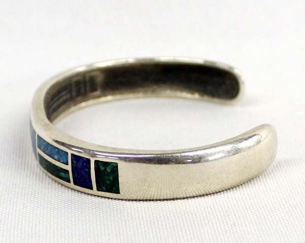 Vintage Coleman Company Sterling & Chip Inlay Bracelet, inside measures 6.75'' which includes the opening x .25''W, hallmarked CCO and stamped .925, 34.03g in total wt.