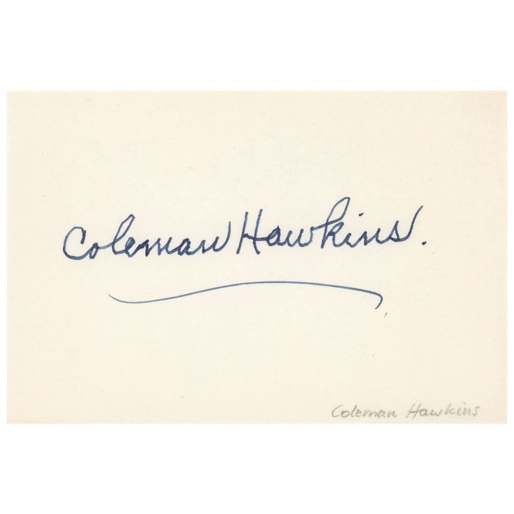 Vintage ink signature, "Coleman Hawkins,†on an off-white 4.75 x 3.25 sheet. In very fine condition.