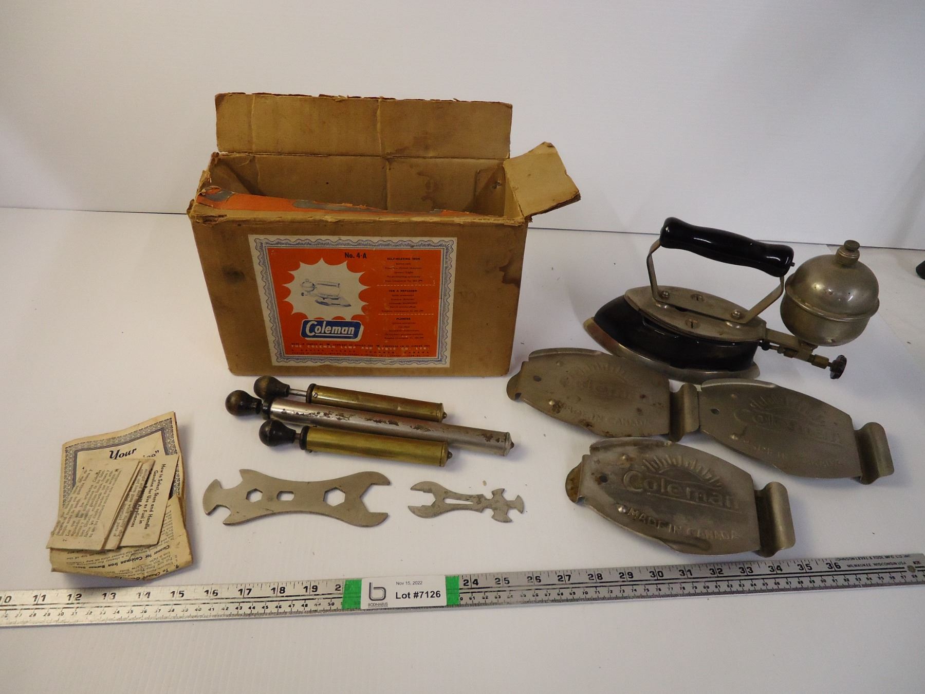 Coleman Iron in original box and accessories