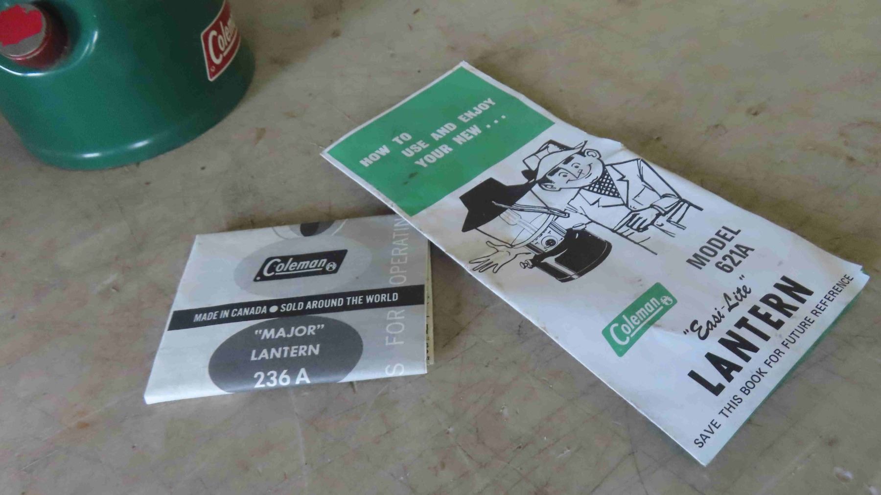 Coleman Lantern Model 335 (Broken Glass) , Box Model 621b , Pamphlet Models 236a & 621a