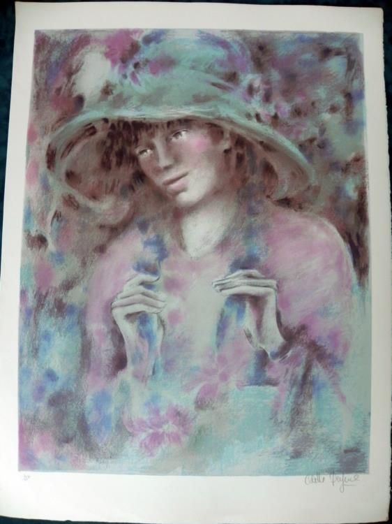 Artist: ColleteTitle: Portrait of a Lady with a HatMedium: Stone Lithograph (Arches Water-Marked)Signature: Signed in pencil, bottom rightSize: 250 (penciled numbered)Size: 30" x 22"Condition: Very good, never framed, no damage or repairsBiographyColette is one of New York City\'s artistic Living National Treasures. Her pioneering street performances in the 1970s brought the avant-garde art form into the public eye. Her beautiful installations at such location as the Fiorucci store on 59th Street in Manhattan, at The Clocktower and PS i, and in various European venues such as Berlin and Rome brought crucial attention to this vital genre of work. And they had a huge influence on Pop culture (without Colette we would not have had many aspects of Madonna, for example). Her altered photographs have been widely exhibited and published to critical acclaim.The influence of her \"Living Tableaux\" resonates in the works of artists as diverse as Cindy Sherman (who restricts her fantasy personas to the two-dimensionality of her photographs) and Matthew Barney (whose use of mythology, notably his satyr impersonations, takes costume play to similar levels of flamboyance). The elaborately staged performances of the Japanese artist, Mariko Mori, also seem to channel Colette in their appropriations of cultural and mythological icons.Her characters are allegorical. They invoke a highly theatrical symbolism to investigate social history and to challenge gender cliches. Her work constantly mines her own personal history and her associations with art and art history. During the past three decades Colette has enacted many recreations of legendary women, among them Delacroix\'s figure of liberty, Marianne; Mata Hari (in 1984 the artist turned her Berlin apartment into the boudoir of the alluring spy); and the Countess Reichenbach (1986), a fictitious aristocrat from the era of the extravagant King Ludwig.While Colette is more appreciated in Europe than in our own city, she is one of our significant and most original artists.*Retrieved from: https://cryptothrift.com/auctions/collectable-art/colette-signed-lithograph-colette-darfeuil-portrait/