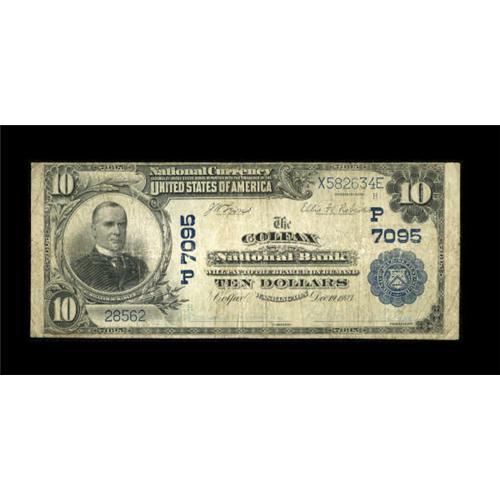 <B>Colfax, WA</B></I> - $10 1902 Plain Back Fr. 624 <B>The Colfax NB</B></I> Ch. # (P)7095<BR> This piece saw more than its fair share of use in Washington channels of commerce. There is some edge roughness and some weakness in the printed details. Regardless, it is a popular note from a tough state. <B>Very Good.</B></I><BR><I>From The Kansas City Collection.</B></I><BR><BR><b>Shipping:</b> Coins & Currency (<a target="_blank" href="http://www.heritageauctions.com/common/shipping.php">view shipping information</a>)