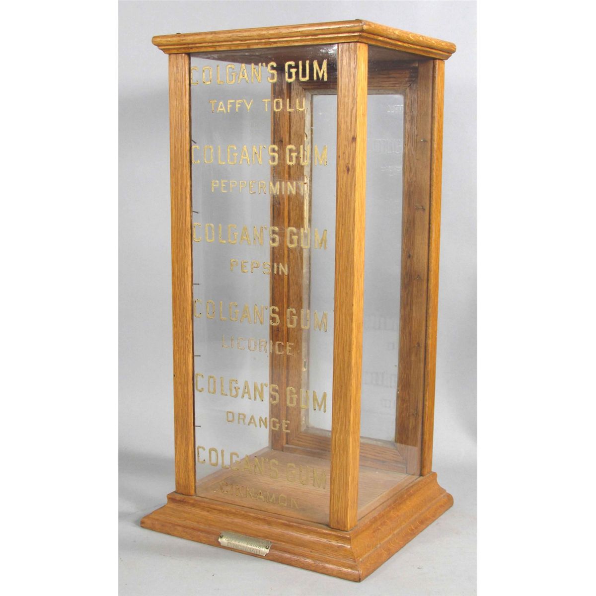 Colgan's Gum Etched Glass Store Display. Case mfg. by Schmitt & Co. Cincinnati. Very good original condition. 9 X 17 1/2 X 8 inches. Start Price $100