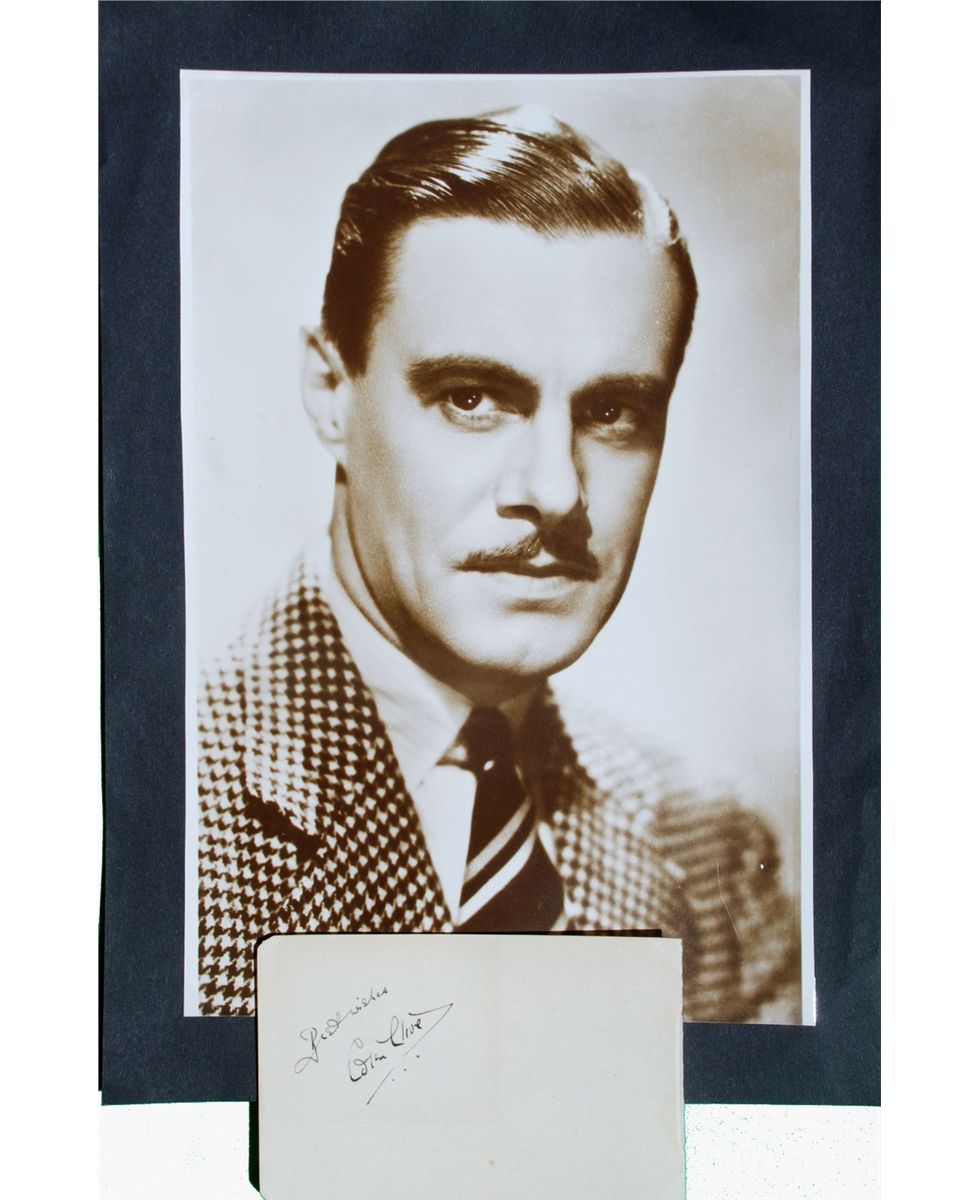 British actor (1900–1937) who earned a place in film history for his performances as Dr. Henry Frankenstein in Frankenstein and Bride of Frankenstein. Severe alcoholism hastened his death from tuberculosis at the age of 37.Vintage fountain pen ignature with a photo, signed " Colin Clive".