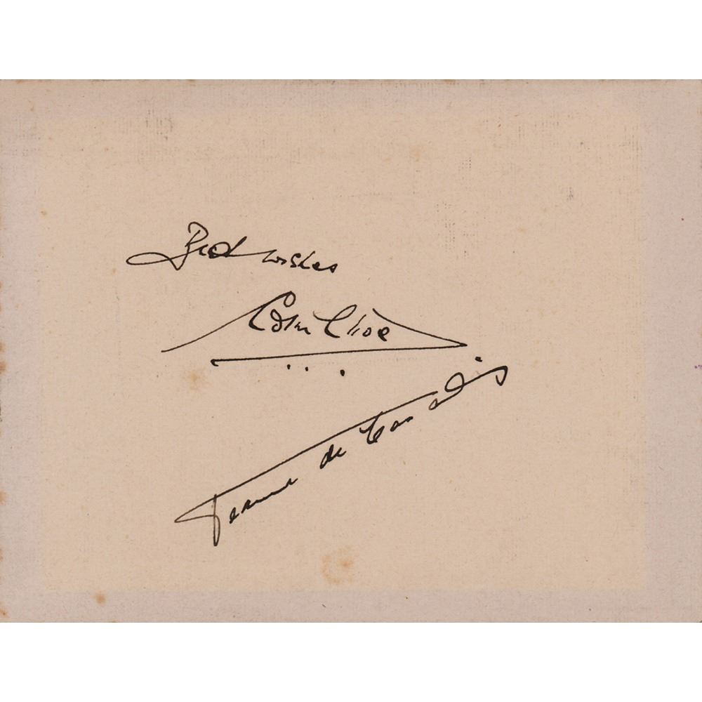 Crisp vintage ink signature, "Best wishes, Colin Clive,” on an off-white 4.5 x 3.5 card that is also signed by his wife, British actress Jeanne de Casalis. In fine condition, with faint toning from prior display.