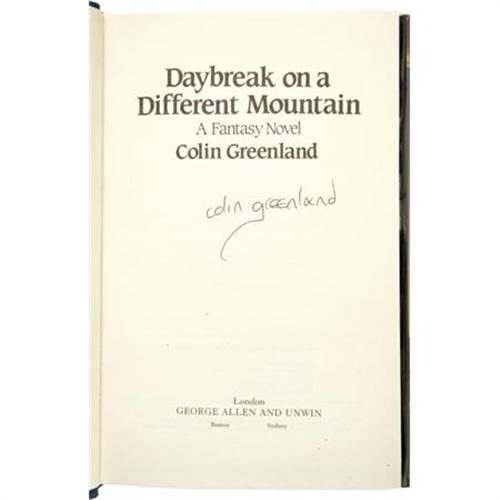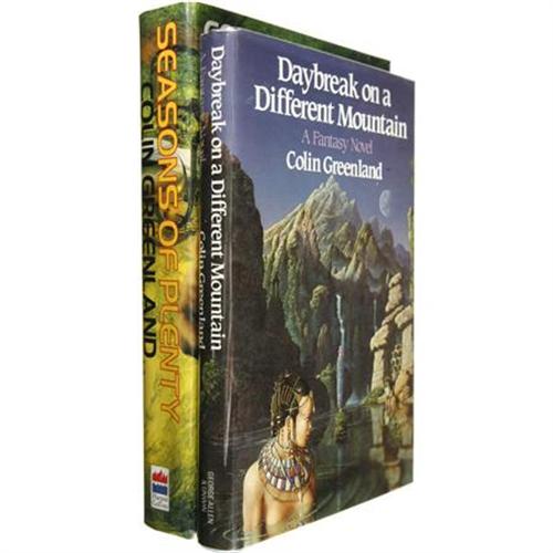 <B>Colin Greenland: Two Signed First Editions.</B></I> Includes the following:<BR><B><I>Break on a Different Mountain.</B></I></B></I> (London: George Allen and Unwin, 1984), first edition, 246 pages, blue boards, 8vo, dust jacket. Condition (book/ dj): fine/ fine.<BR><B><I>Seasons of Plenty.</B></I></B></I> (London: Harper Collins, 1995), first edition, 403 pages, green boards, 8vo, dust jacket. Condition (book/ dj): fine/ fine.<BR><BR><b>Shipping:</b> Books & Catalogs (<a target="_blank" href="http://www.heritageauctions.com/common/shipping.php">view shipping information</a>)