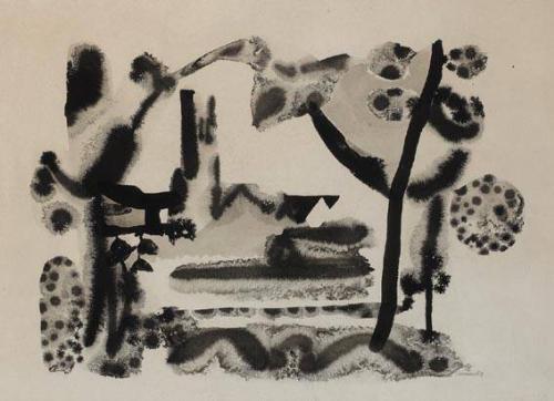 <B>Colin Middleton MBE RHA (1910-1983)</B><BR>COLERAINE<BR>signed in monogram, inscribed and dated [1957] lower right<BR>brush and ink on paper<BR>25 by 36cm., 10 by 14in.<BR><BR>
