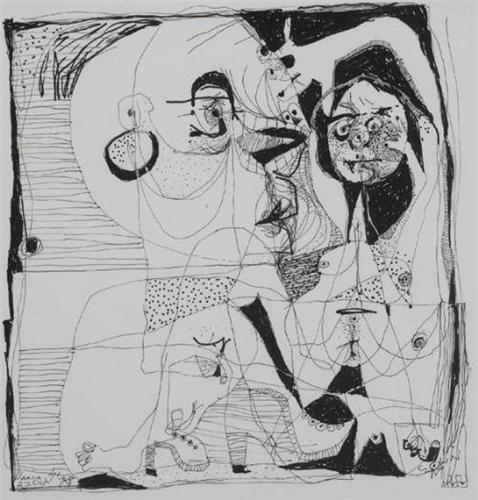 <B>Colin Middleton MBE RHA (1910-1983)</B><BR>LLANCA (FIGURE STUDY)<BR>signed lower right; inscribed and dated [27 October 1978] lower left; studio sale stamp on reverse<BR>pen and ink on paper<BR>20 by 20cm., 8 by 8in.<BR><BR>