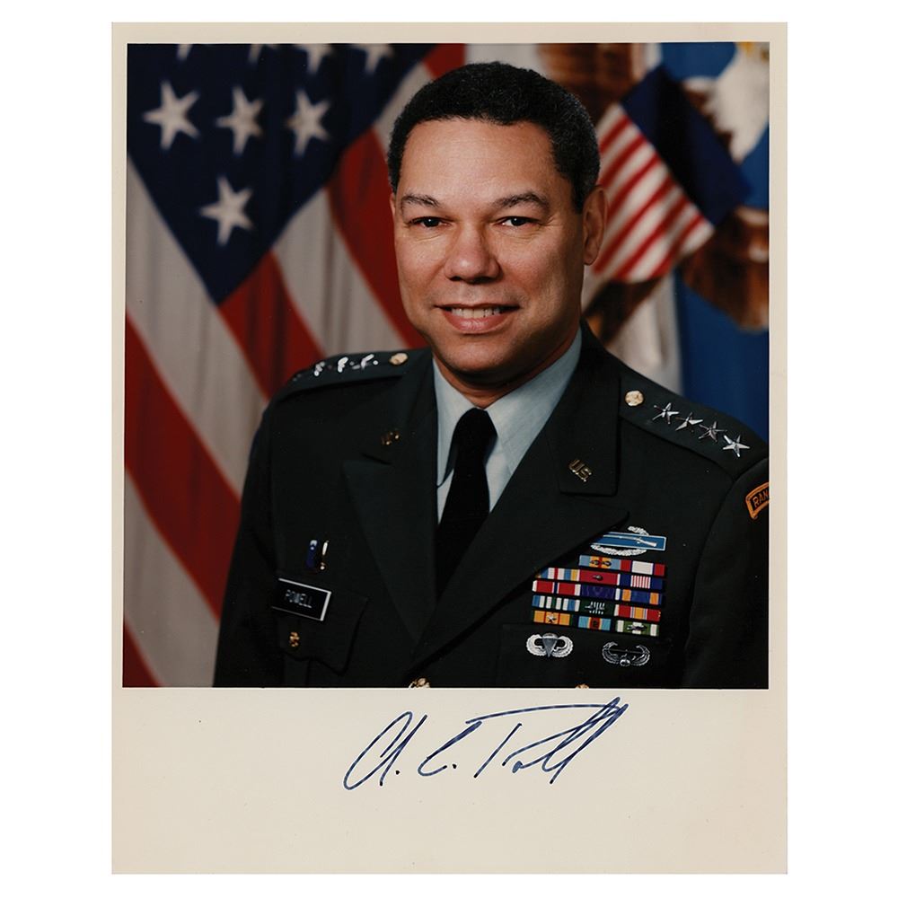 Color satin-finish 8 x 10 photo of Colin Powell in uniform as a four-star general, signed in the lower border in black felt tip, "Colin L. Powell." In fine condition.