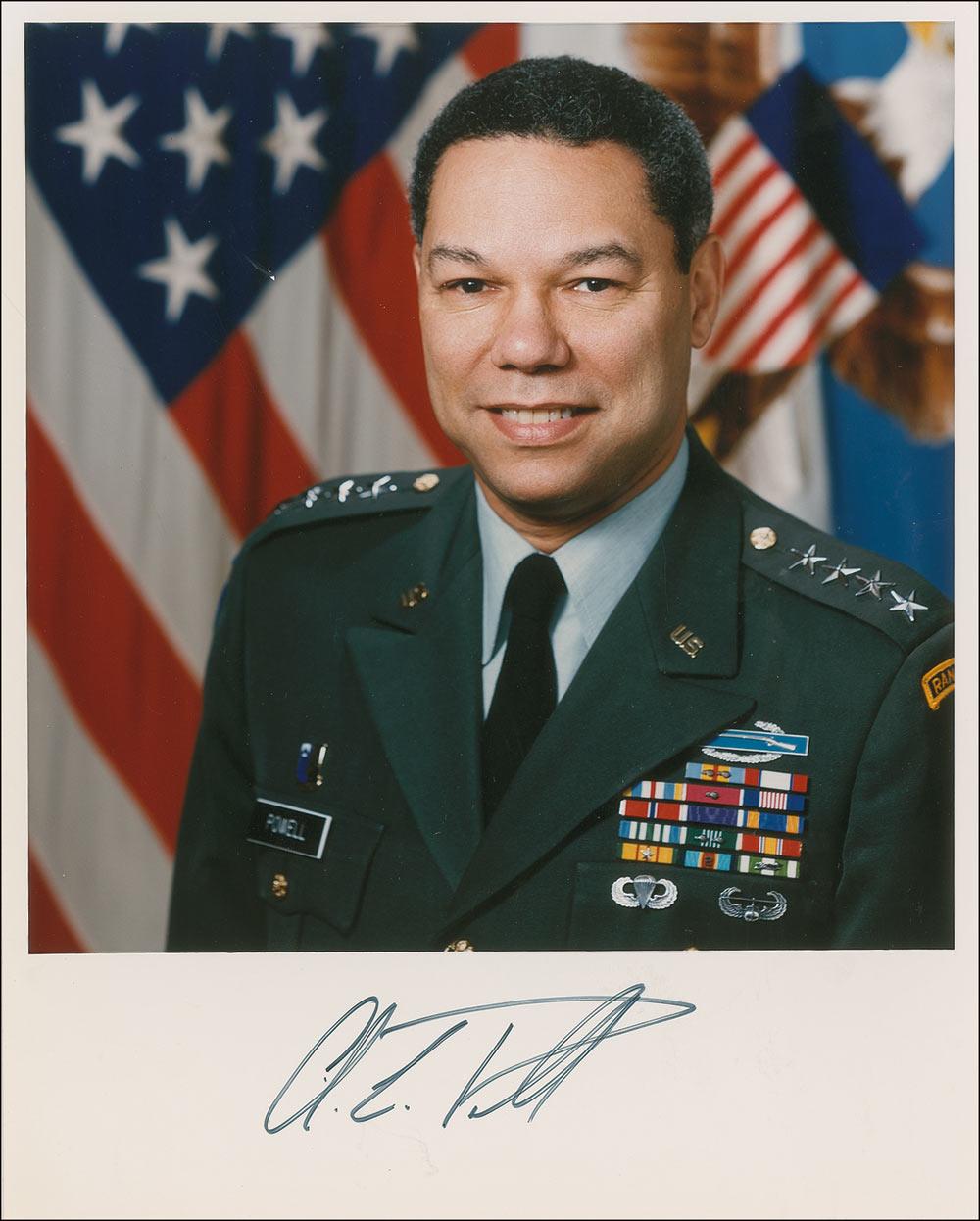 Color satin-finish 8 x 10 photo of Powell in full uniform, signed in the lower border in black felt tip. In very fine condition.