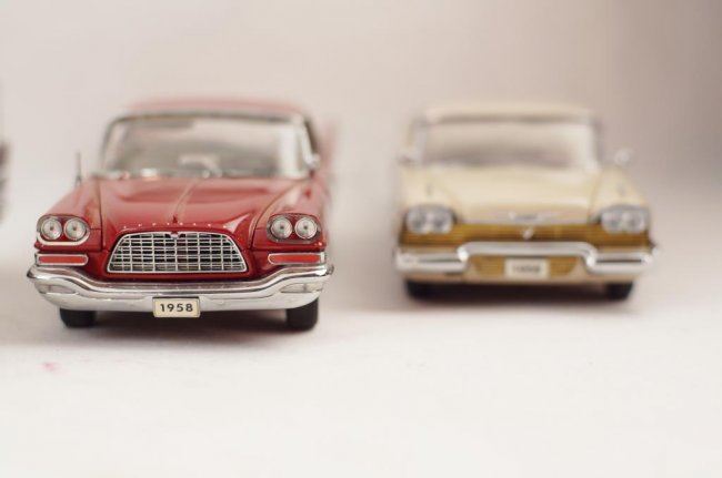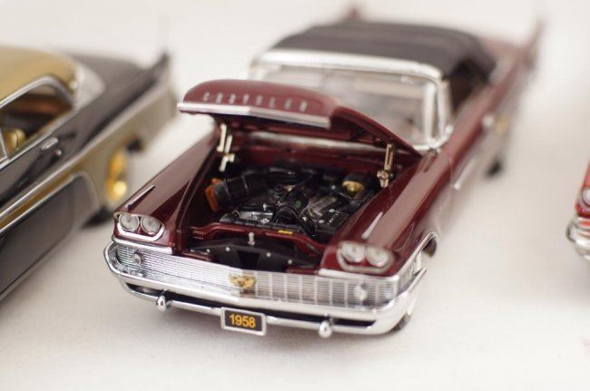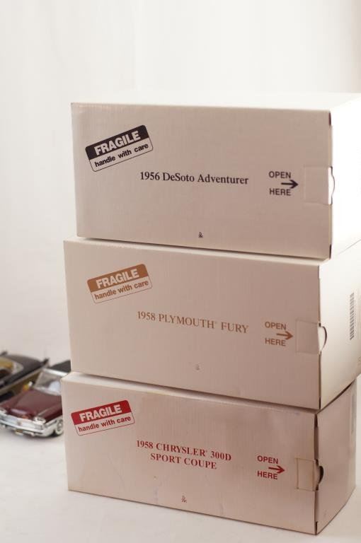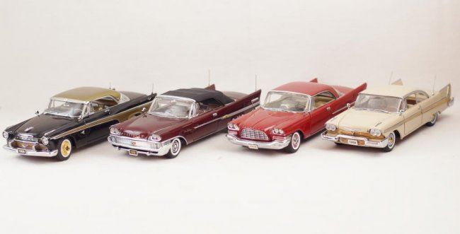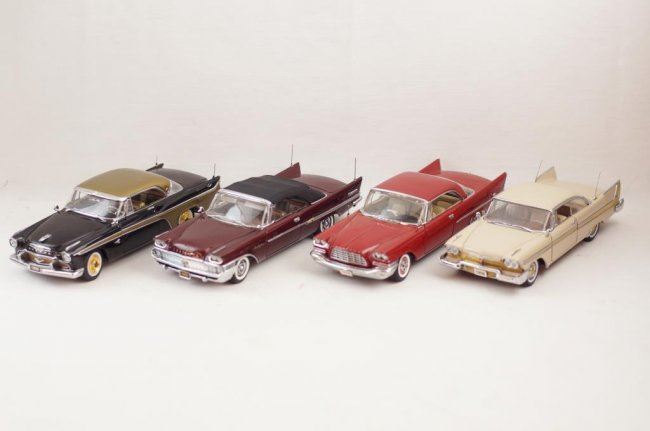 1956 Desoto " Adventurer", 58 Chrysler "New Yorker convertible, 58 Plymouth "Fury", 58 Chrysler "300D" - 4pcs with 3 original boxes