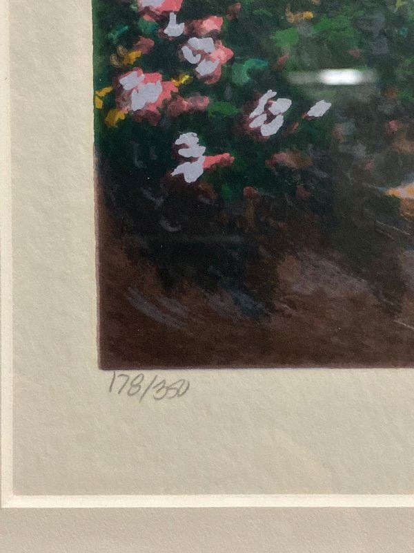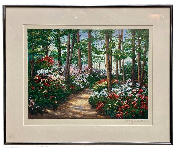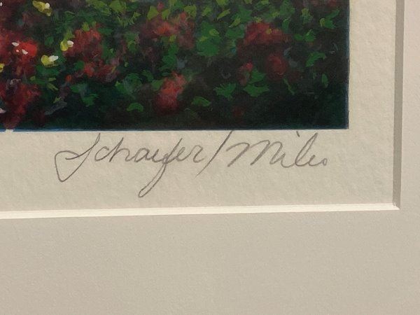 Quality, signed, limited edition (#178/300) lithograph, one of their famous "Path" landscapes, by Kevin Miles and Wendy Schaefer-Miles from northern Wisconsin. Matted and framed. Very good condition.