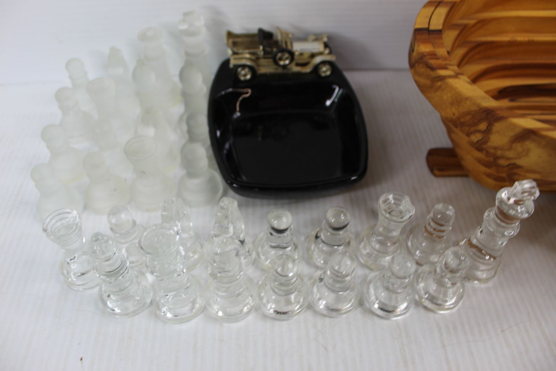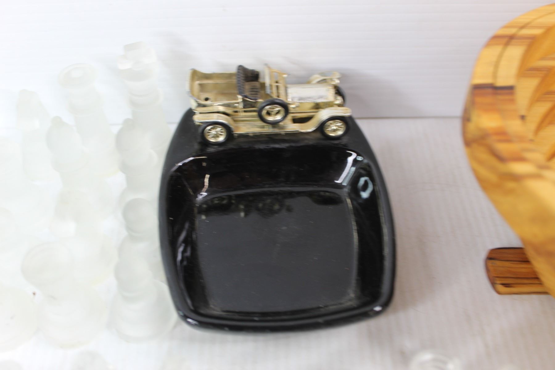 Collapsable Wooden Basket, Various Glass Cheese Pieces- Some Missing, Vintage Automobile Ashtray