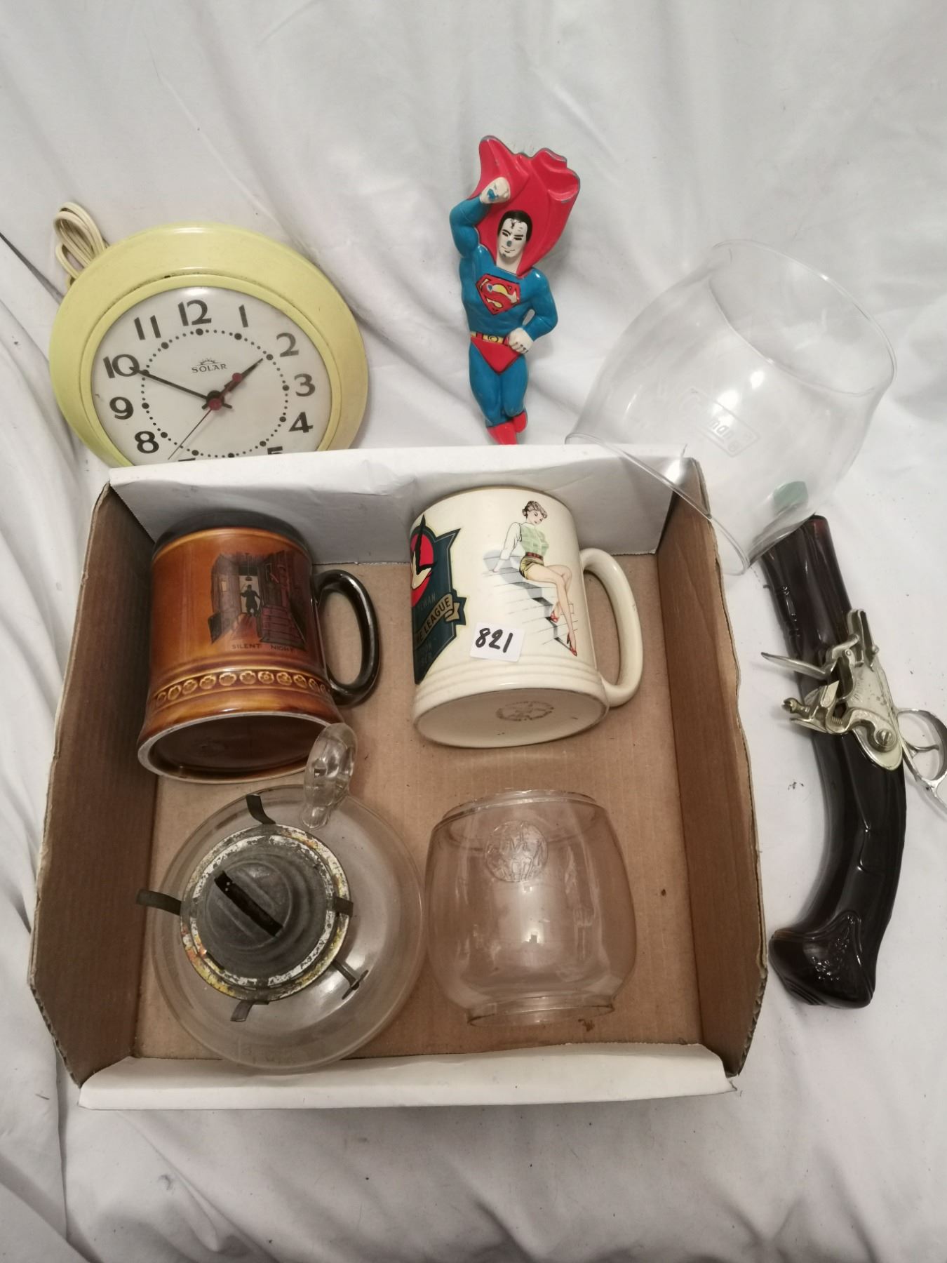 Collectable Lot, Lamp, Shade, Mugs, Clock, Superman Brush