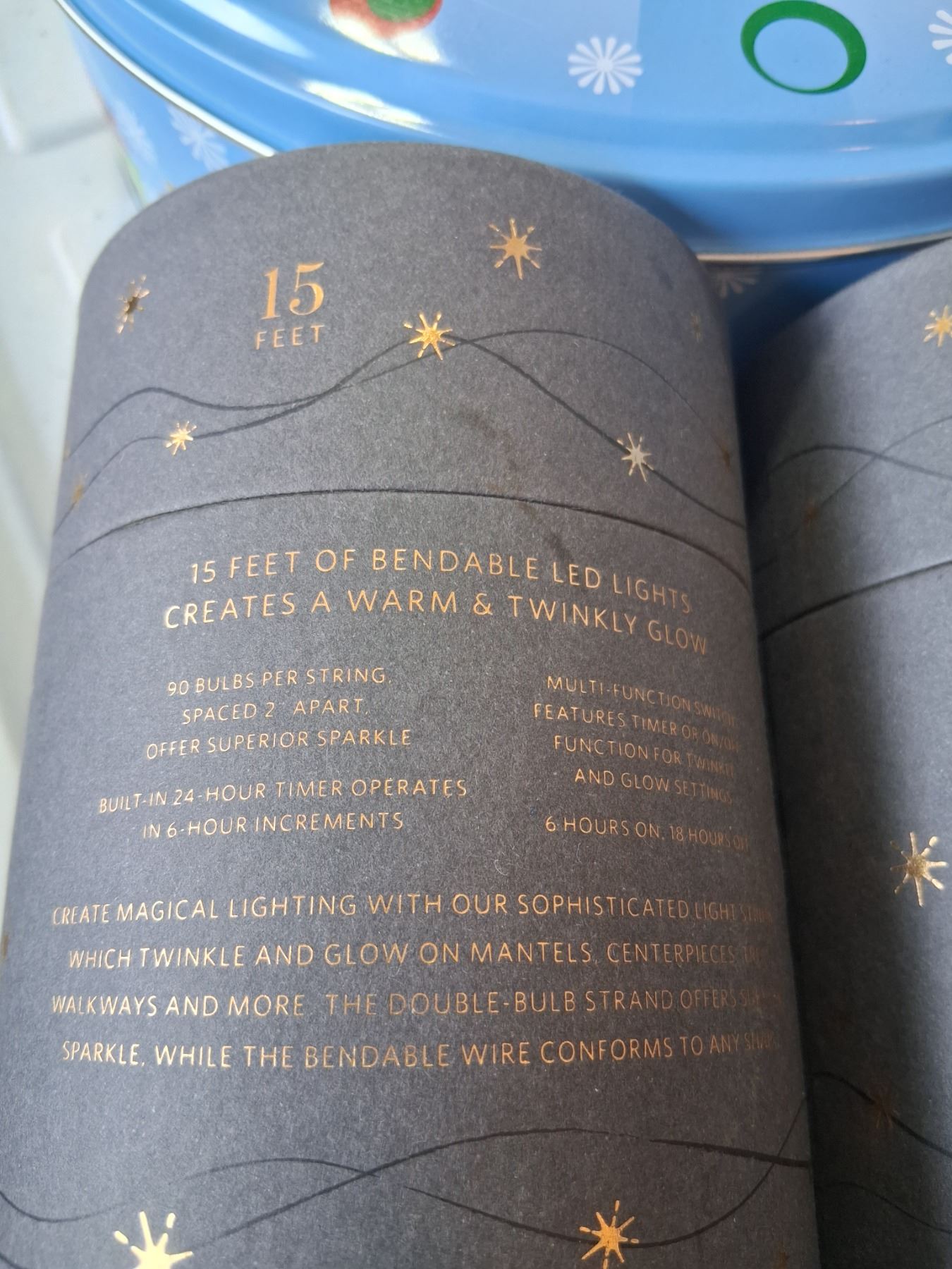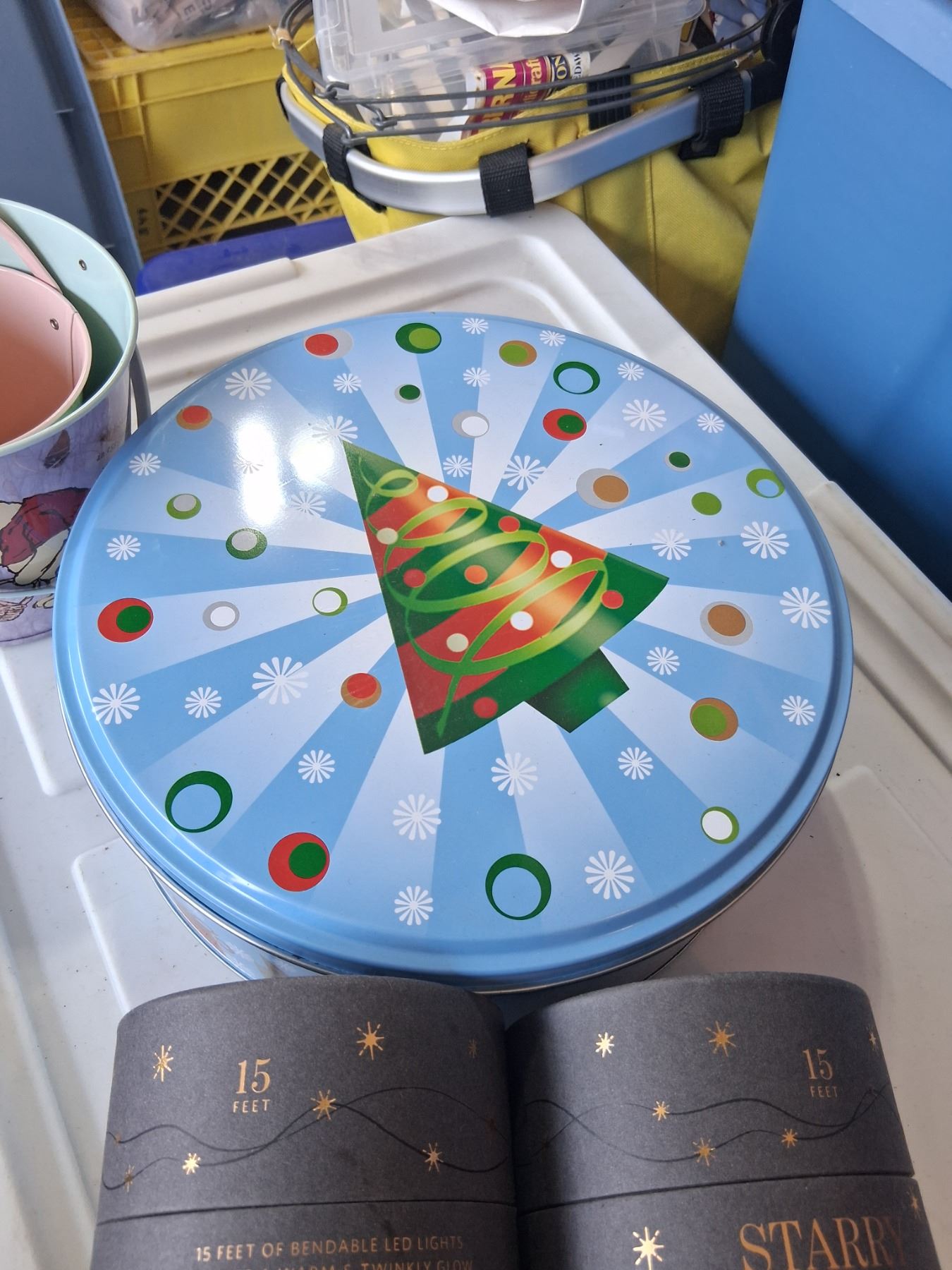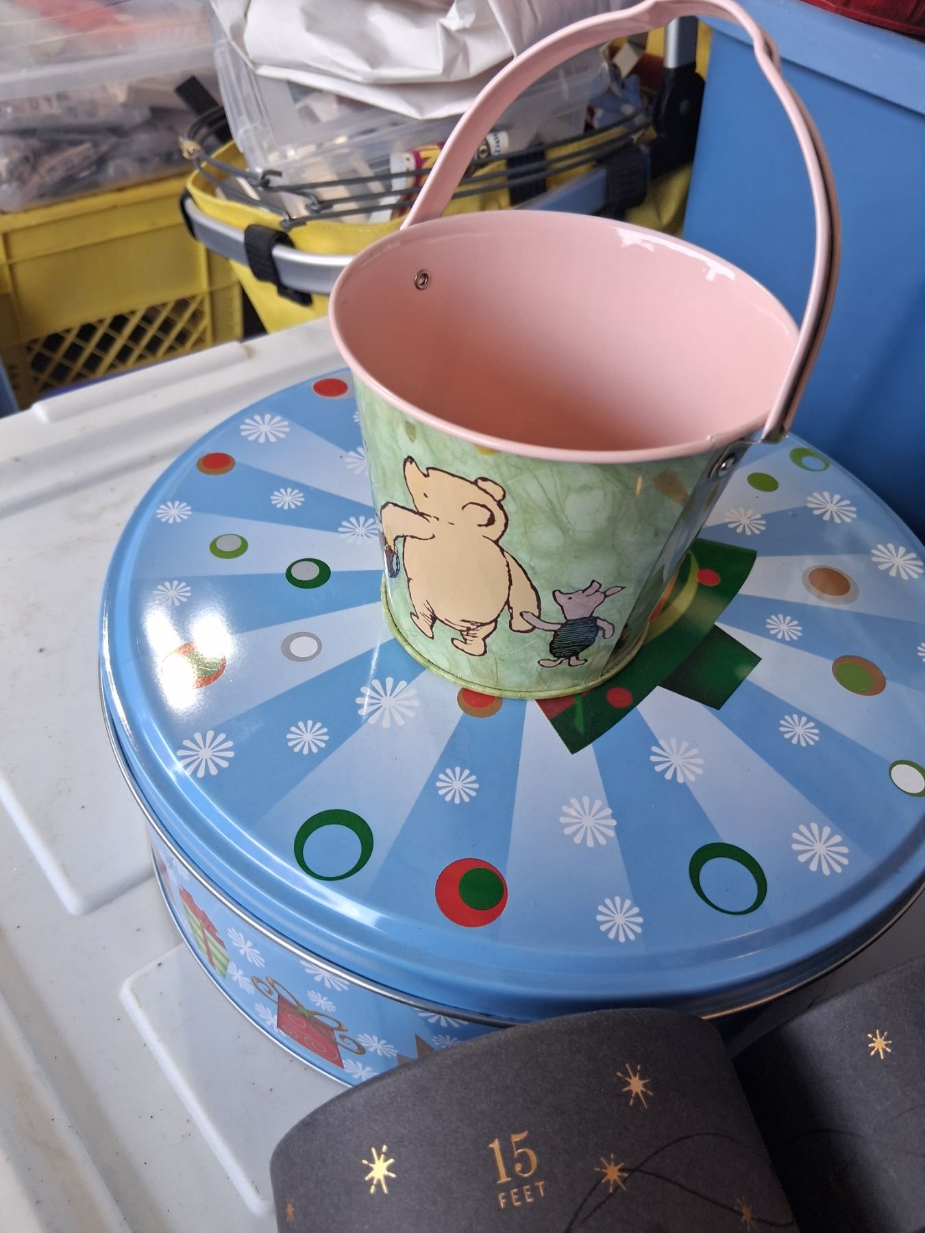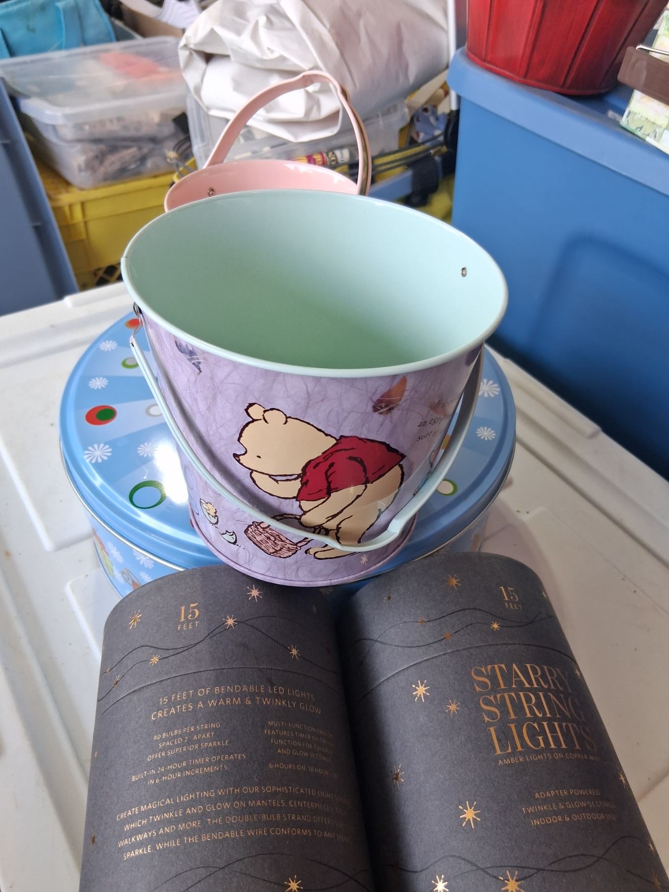 2ea Xmas lite strings new, 1 xmas tin, 2ea Winnie the Pooh Pails